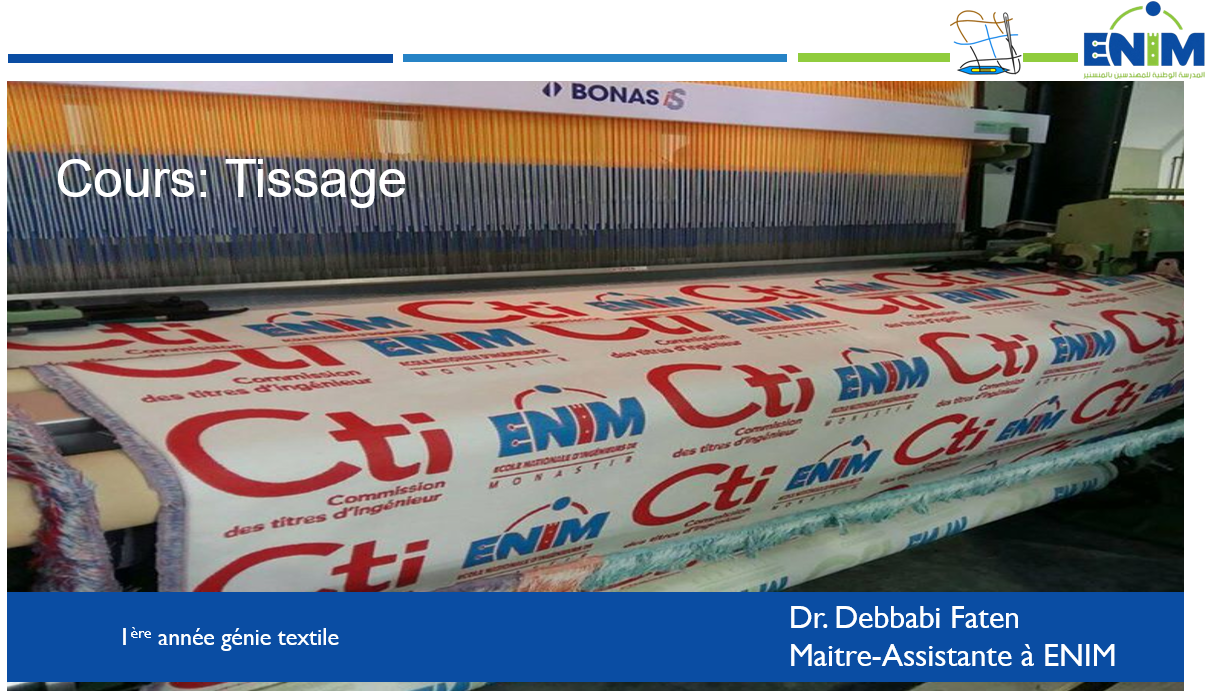 Ce cours est destiné aux étudiants de la 1ère année génie textile de l'Ecole Nationale d'Ingénieurs de Monastir. Il contient une introduction aux notions relatives à la technologie de tissage et la théorie des armures.